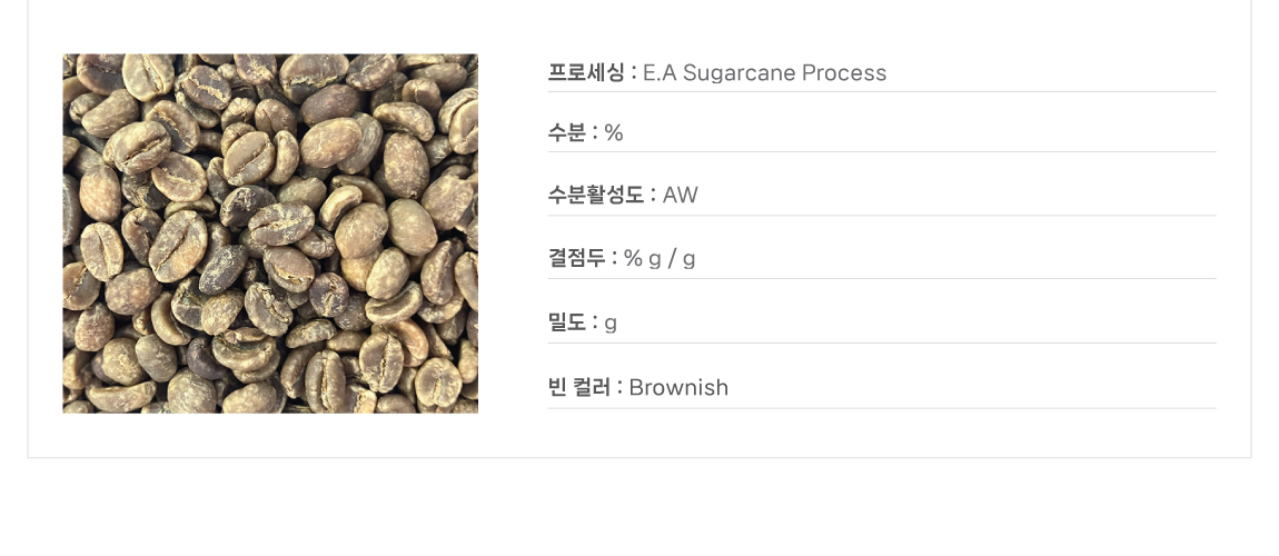 HOME > 디카페인 > 콜롬비아 > 콜롬비아 E.A 프로세스 슈거케인 디카페인