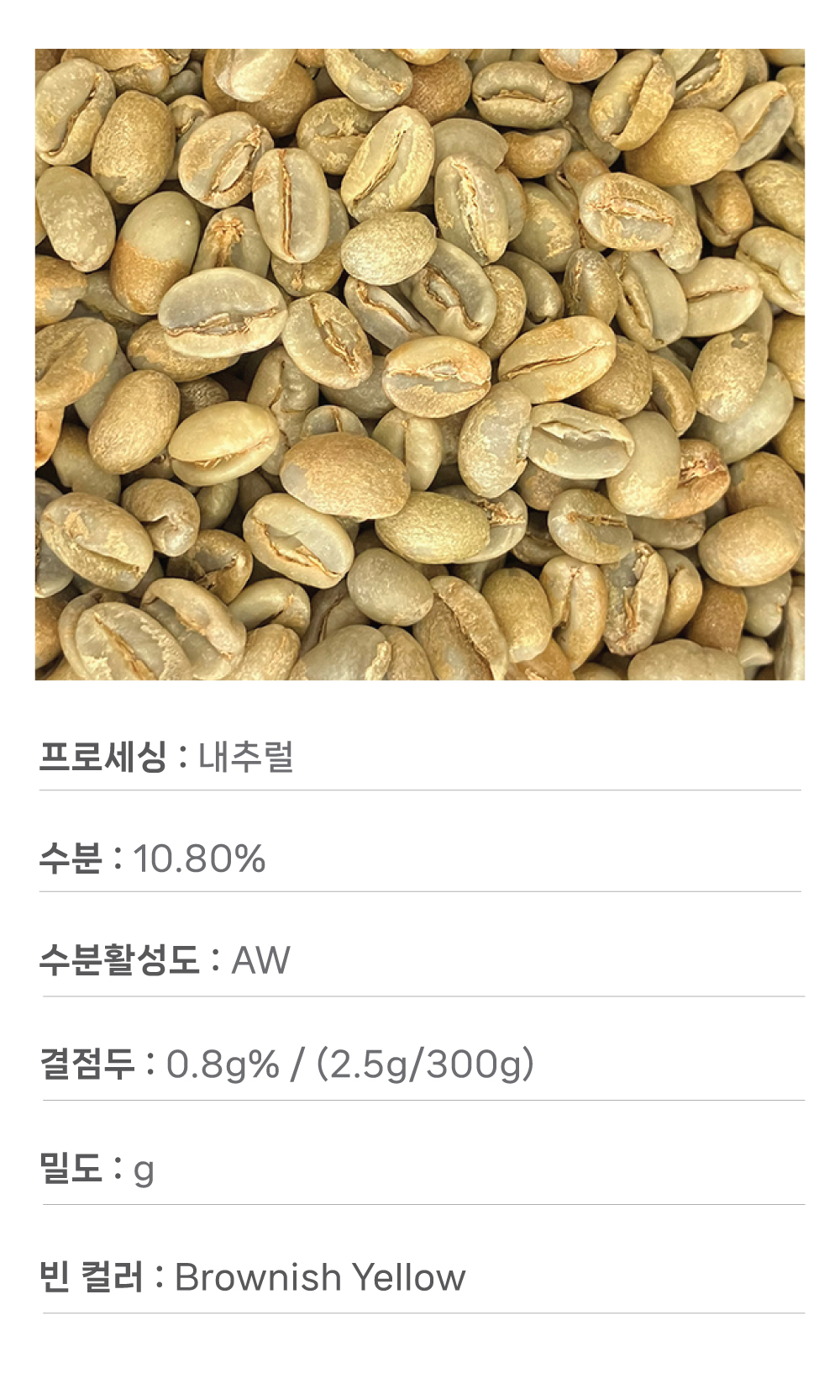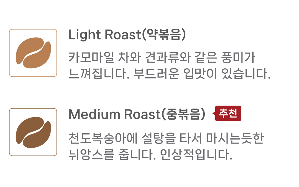 ※ 화이트크롭이 있으므로 로스팅시에 퀘이커가 있습니다. 사전에 샘플 구매하시는걸 추천드립니다.